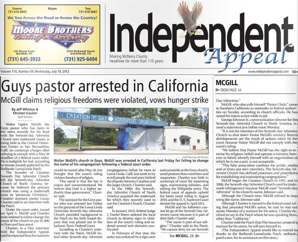 May 15, 2012 Pastor McGill Answers the General Conference Communications Department's point of view published in the Independent Appeal.