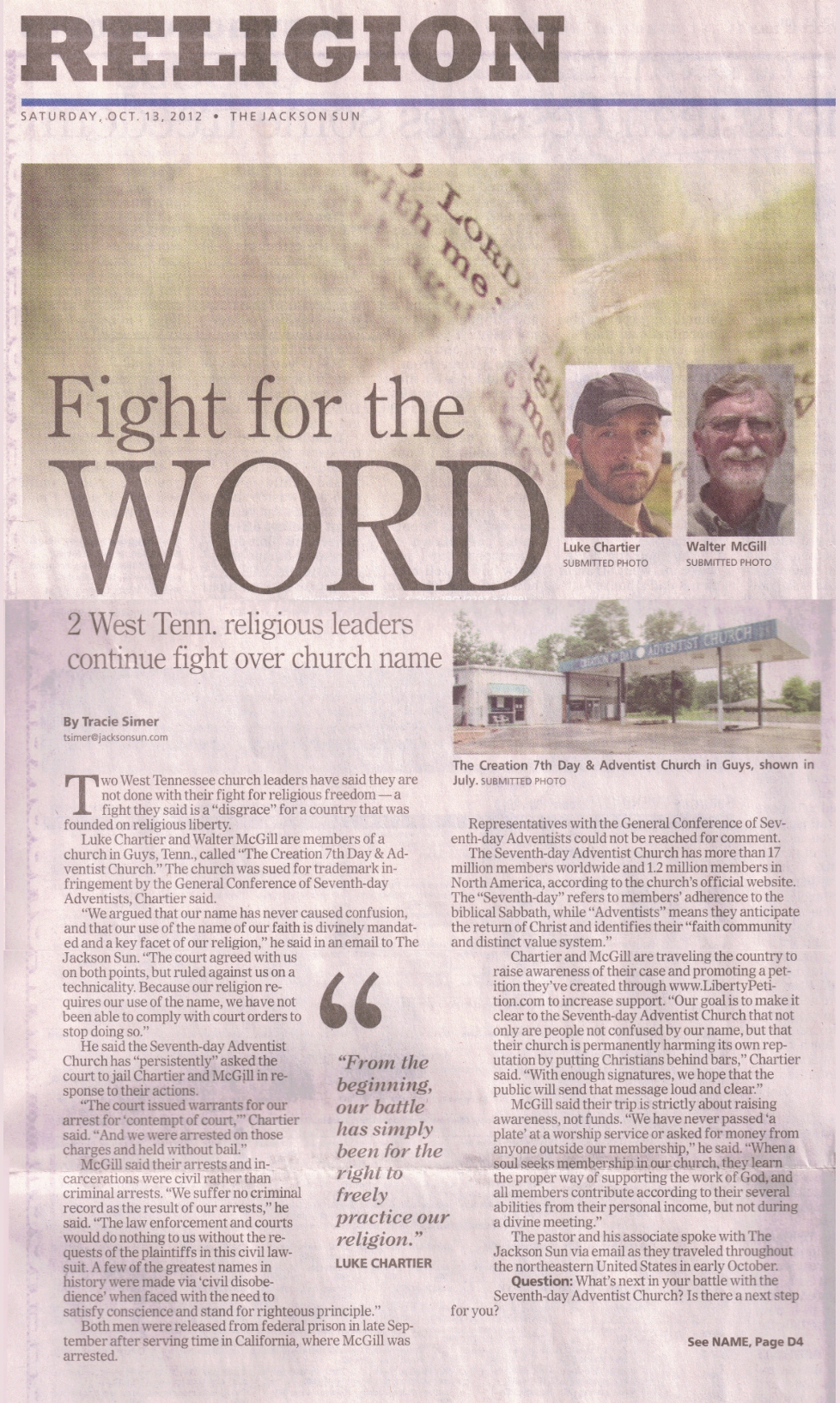 Examiner.com Tennessee Pastor Arrested for Including 'Seventh-day Adventist' in Church Name