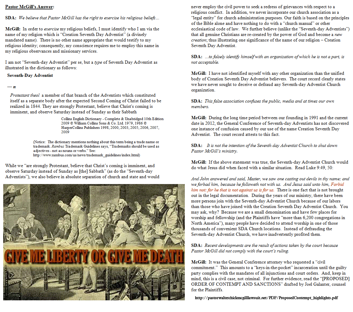 The SDA Church was a major supporter of the RFRA bill in 1992-93. Will the General Conference reverse the original position in Gen. Conf. v. McGill?October 20, 2010: Motion for Contempt