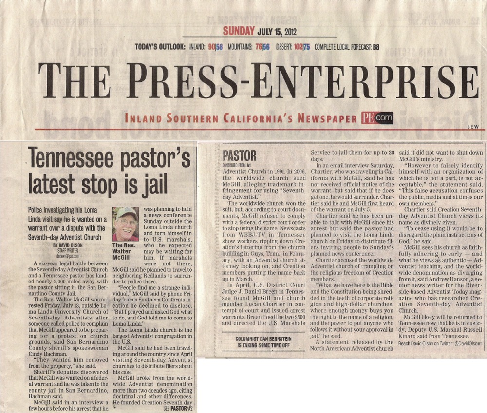 ENDRTIMES Tennessee Pastor in Adventist Dispute To Do Time in San Bernardion County