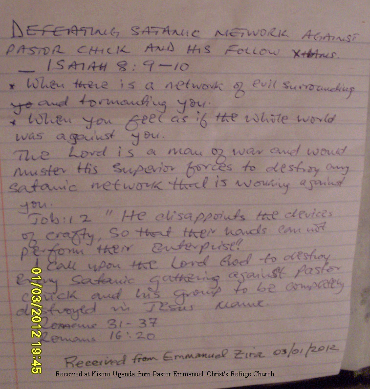 March 3, 2012:Letter to Pastor "Chick" from Kisoro Uganda